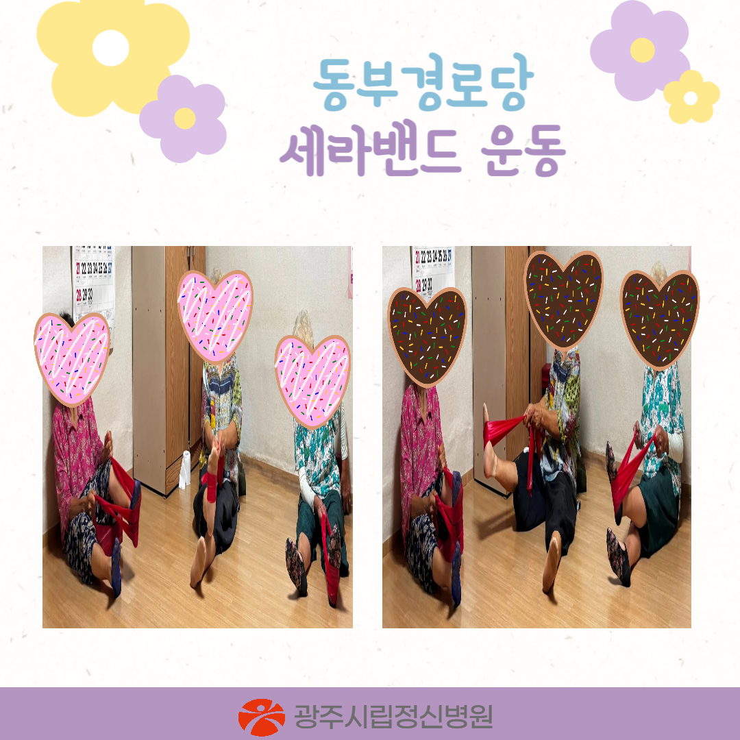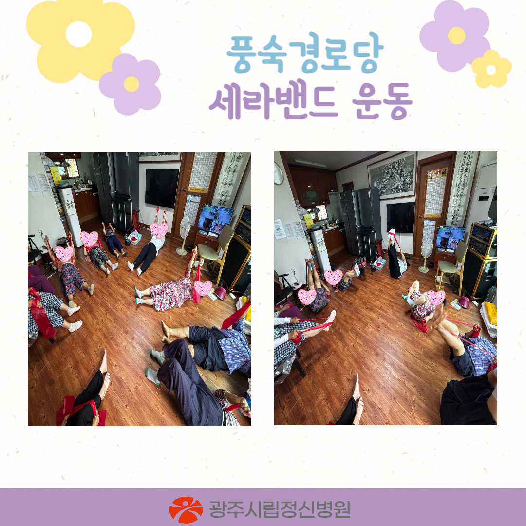 경로당을 이용하는 어르신들에게 스트레스 완화를 위한 정신건강 증진을 도모하고자 세라밴드 운동프로그램 및 석고방향제 색칠하기를 진행하였습니다.