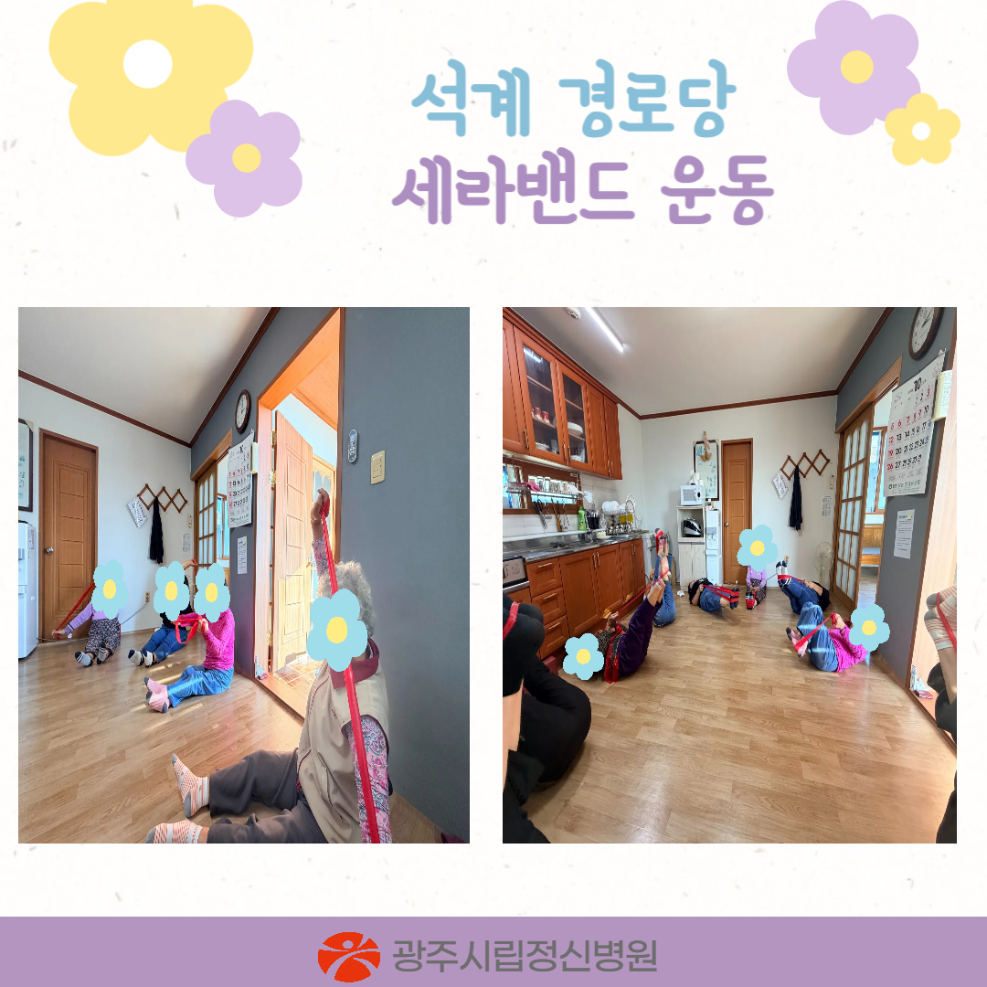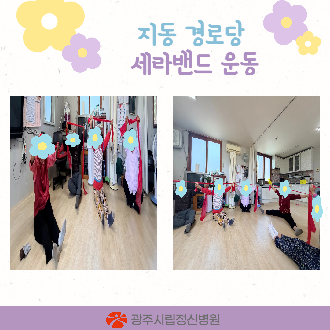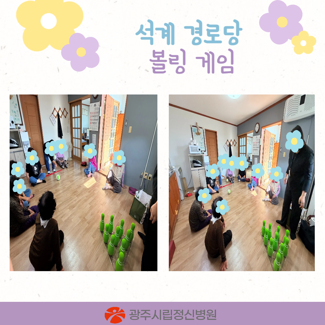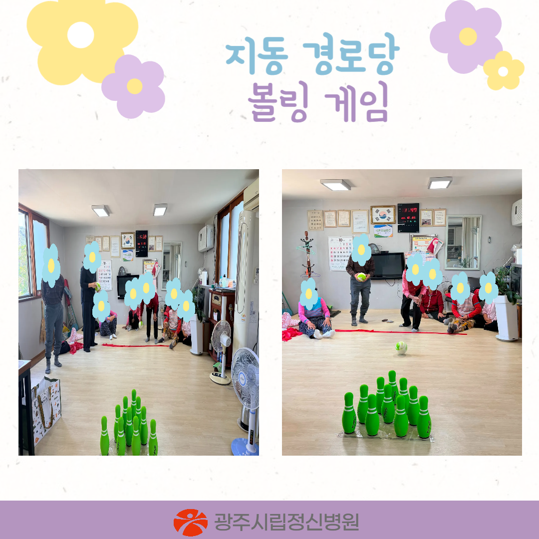 경로당을 이용하는 어르신들에게 스트레스 완화를 위한 정신건강 증진을 도모하고자 세라밴드운동 및 볼링게임을 진행하였습니다.