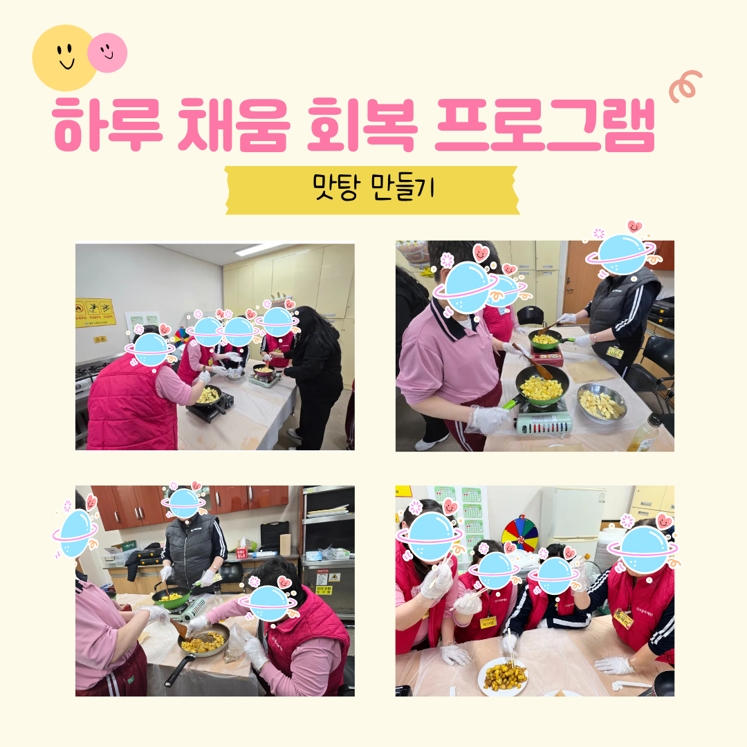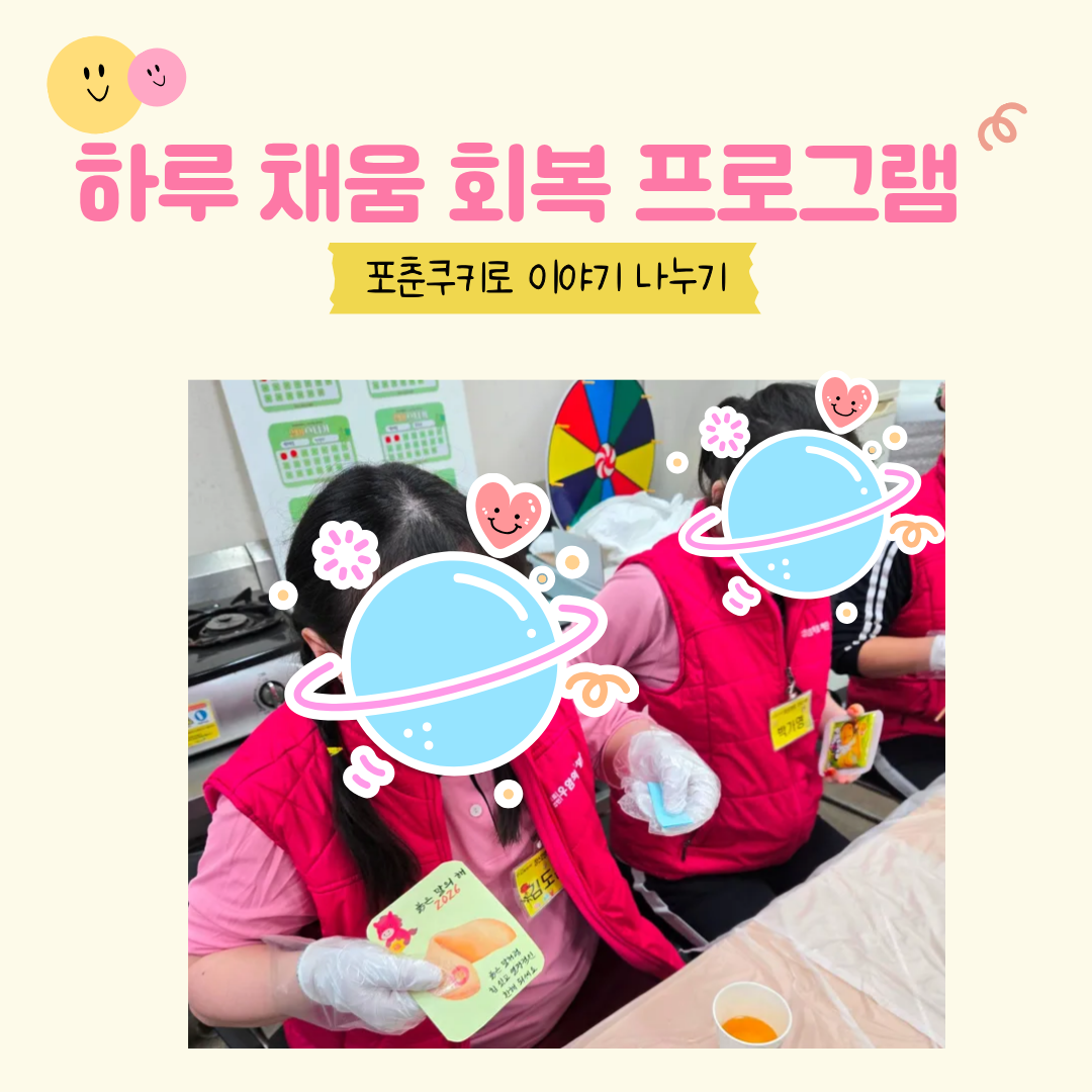 입원환자분들의 회복 및 지역사회복귀를 위해 출석부에 스티커 붙이기, 맛탕 만들기, 포춘쿠키 나눠 가지고 이야기 나눠보기를 진행하였습니다.