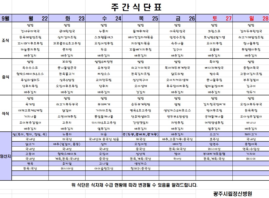 [2025.09.22~2025.09.28 식단표]