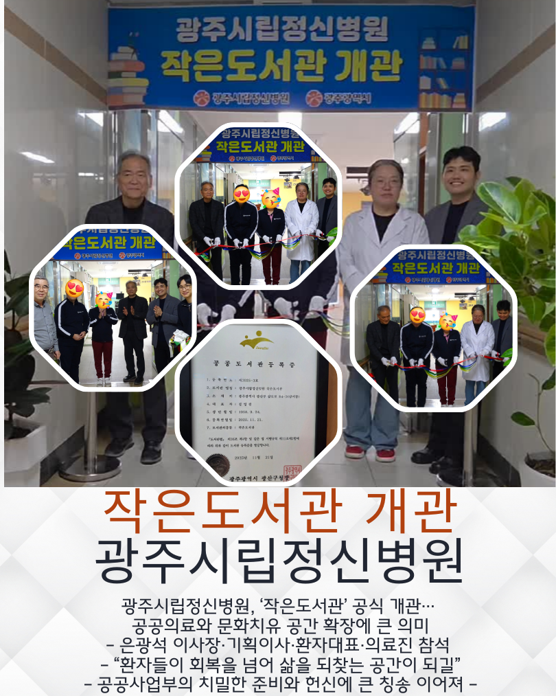 광주시립정신병원은 3일 오후 2시, 병원 내에 마련된 ‘작은도서관’ 개관식을 성대하게 개최했다.