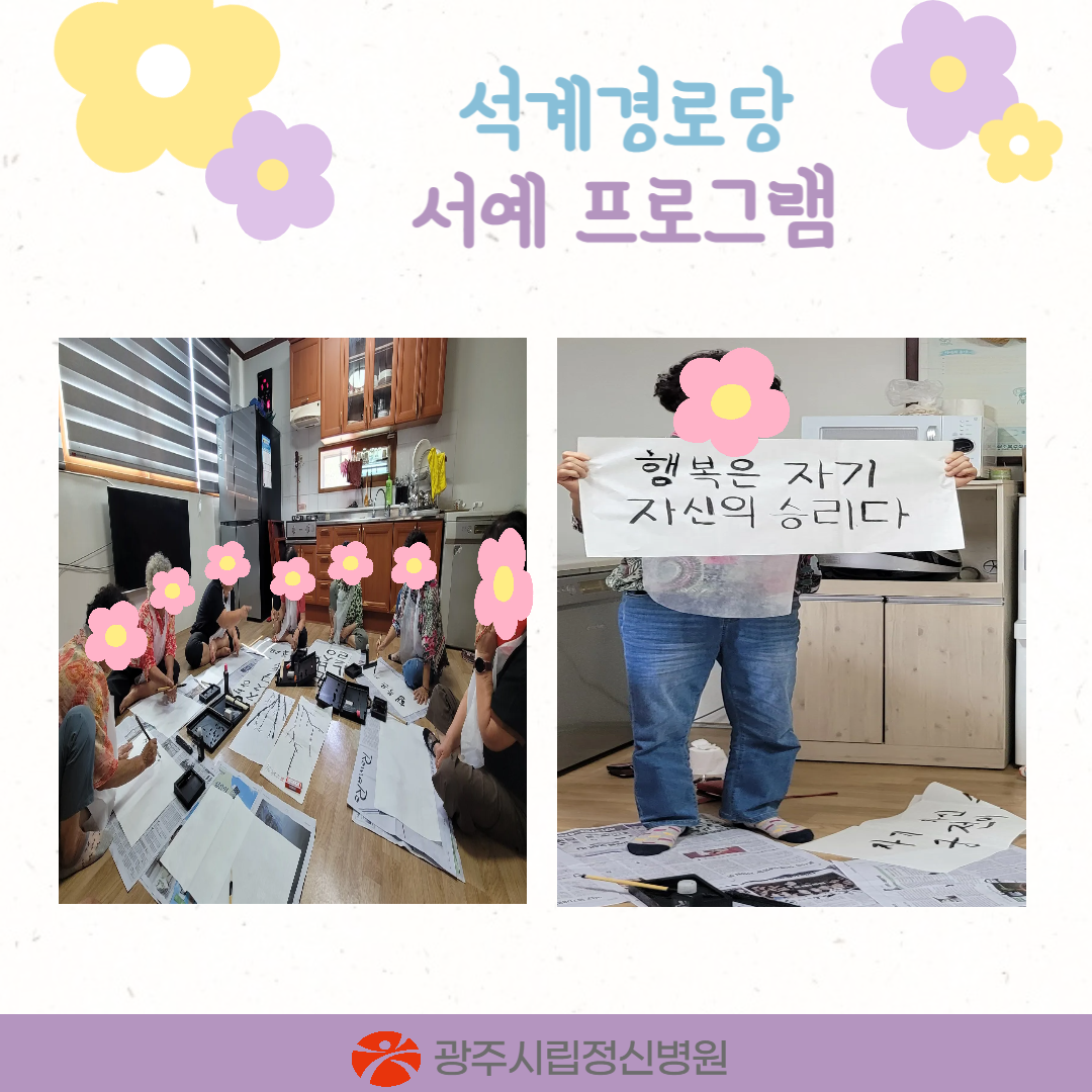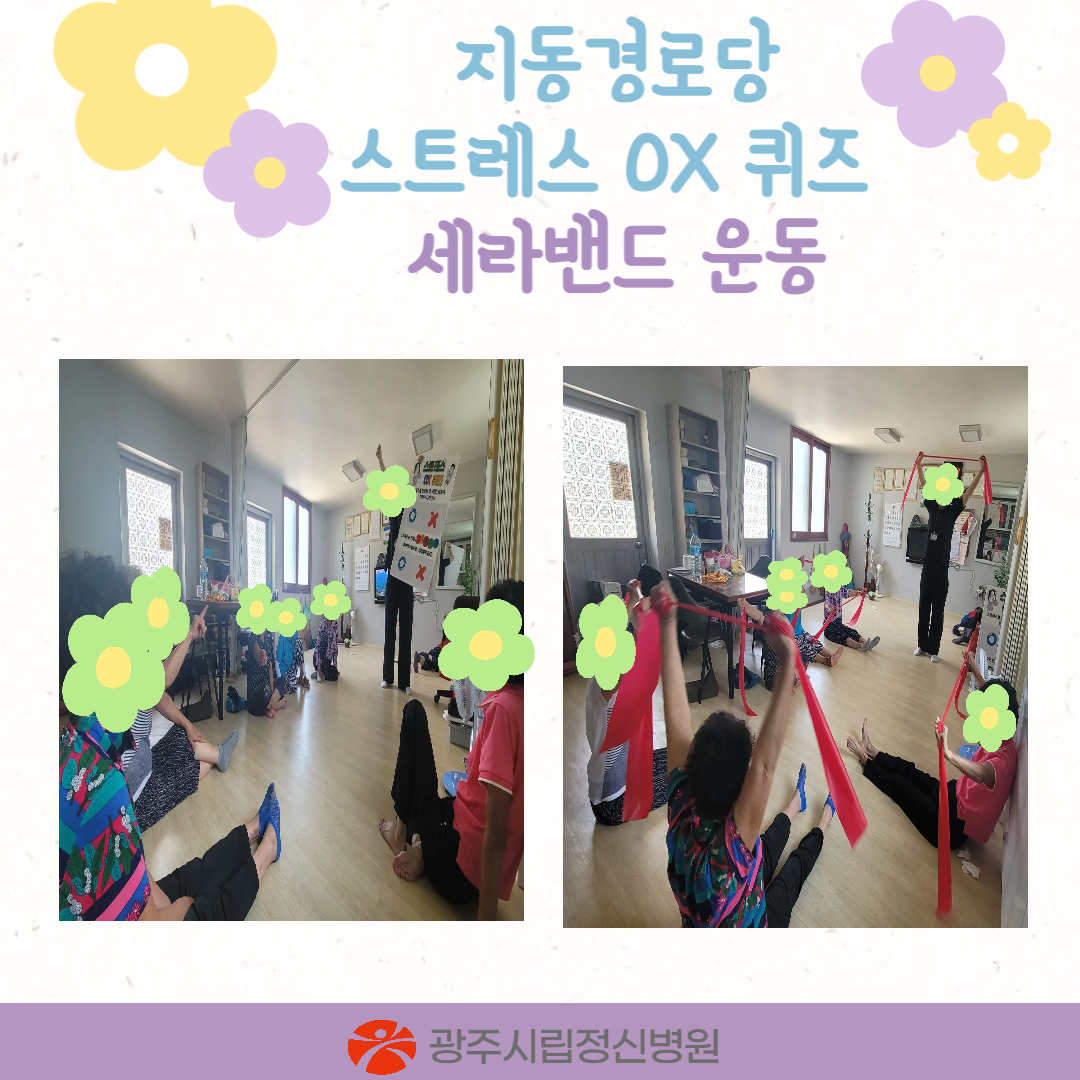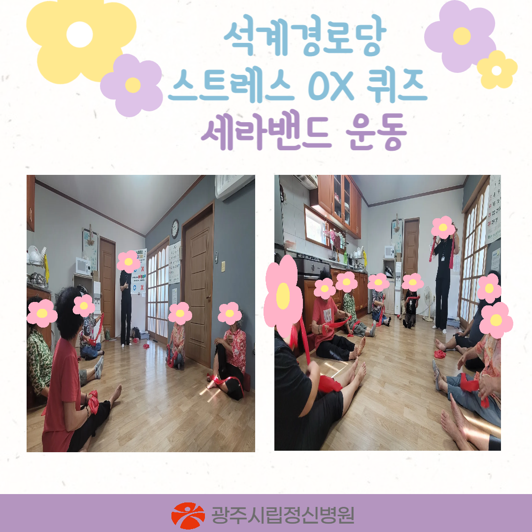 경로당을 이용하는 어르신들에게 스트레스 완화를 위한 정신건강 증진을 도모하고자 세라밴드 운동프로그램 및 서예프로그램을 진행하였습니다.