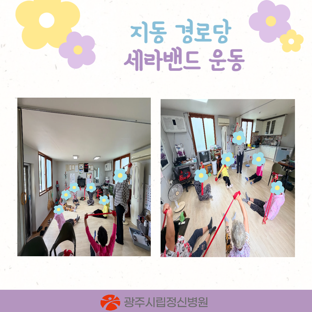 경로당을 이용하는 어르신들에게 스트레스 완화를 위한 정신건강 증진을 도모하고자 자개손거울 꾸미기 및 세라밴드 운동을 진행하였습니다.