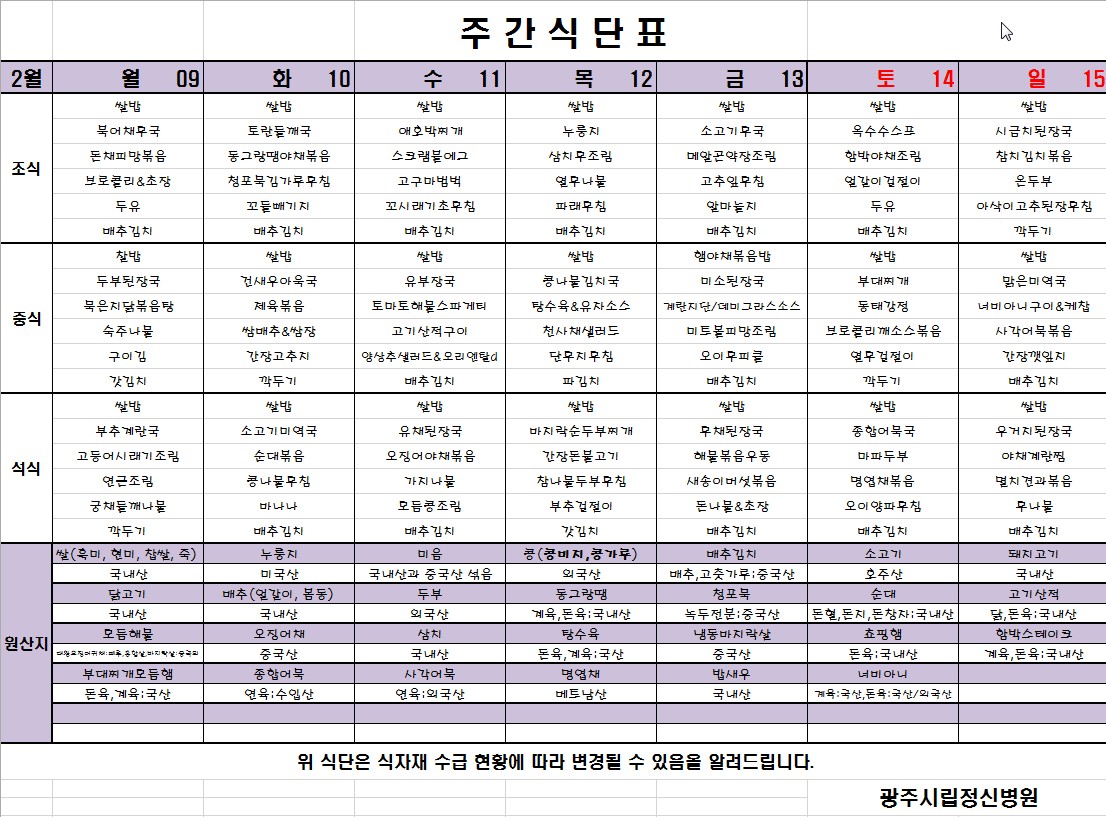 [2026.02.09~2026.02.15 식단표]