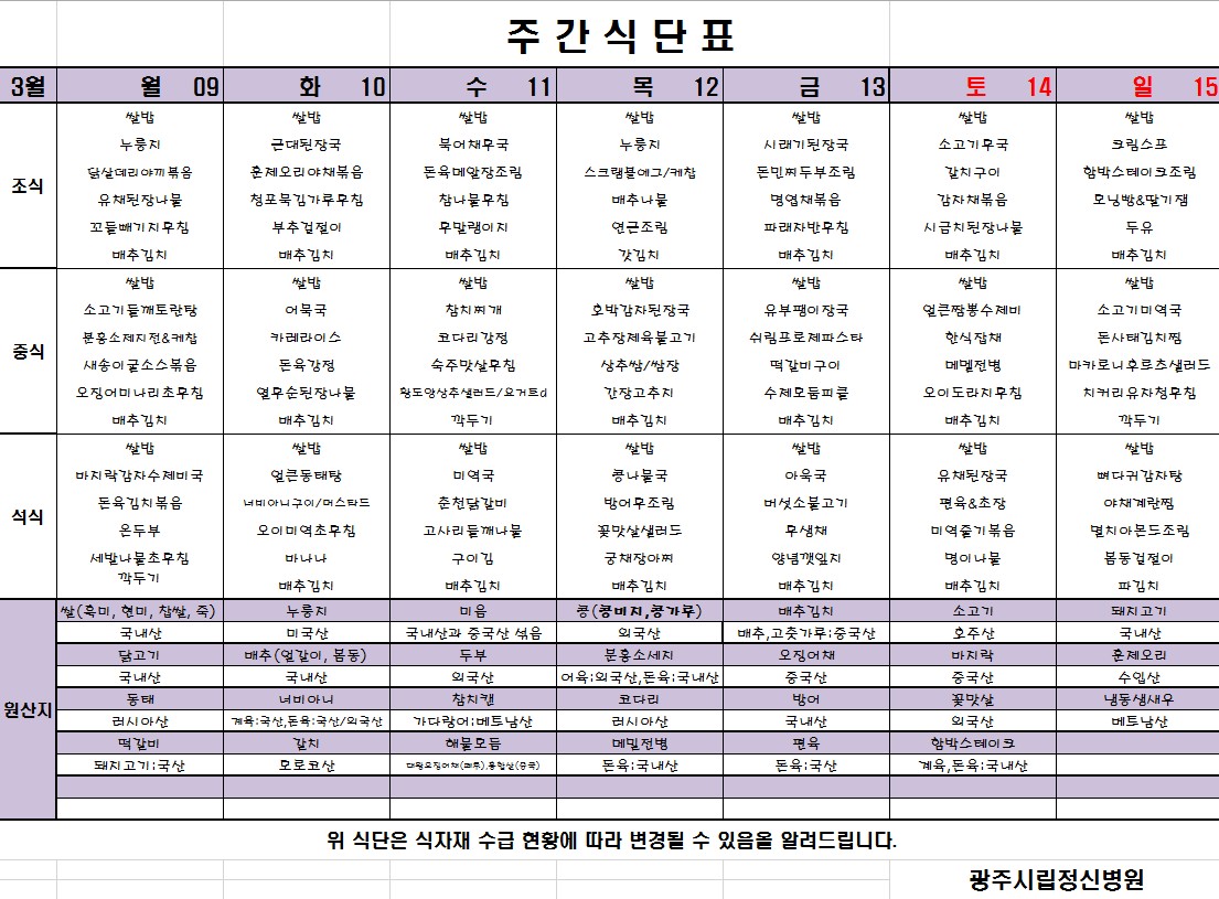 [2026.03.09~2026.03.15 식단표]